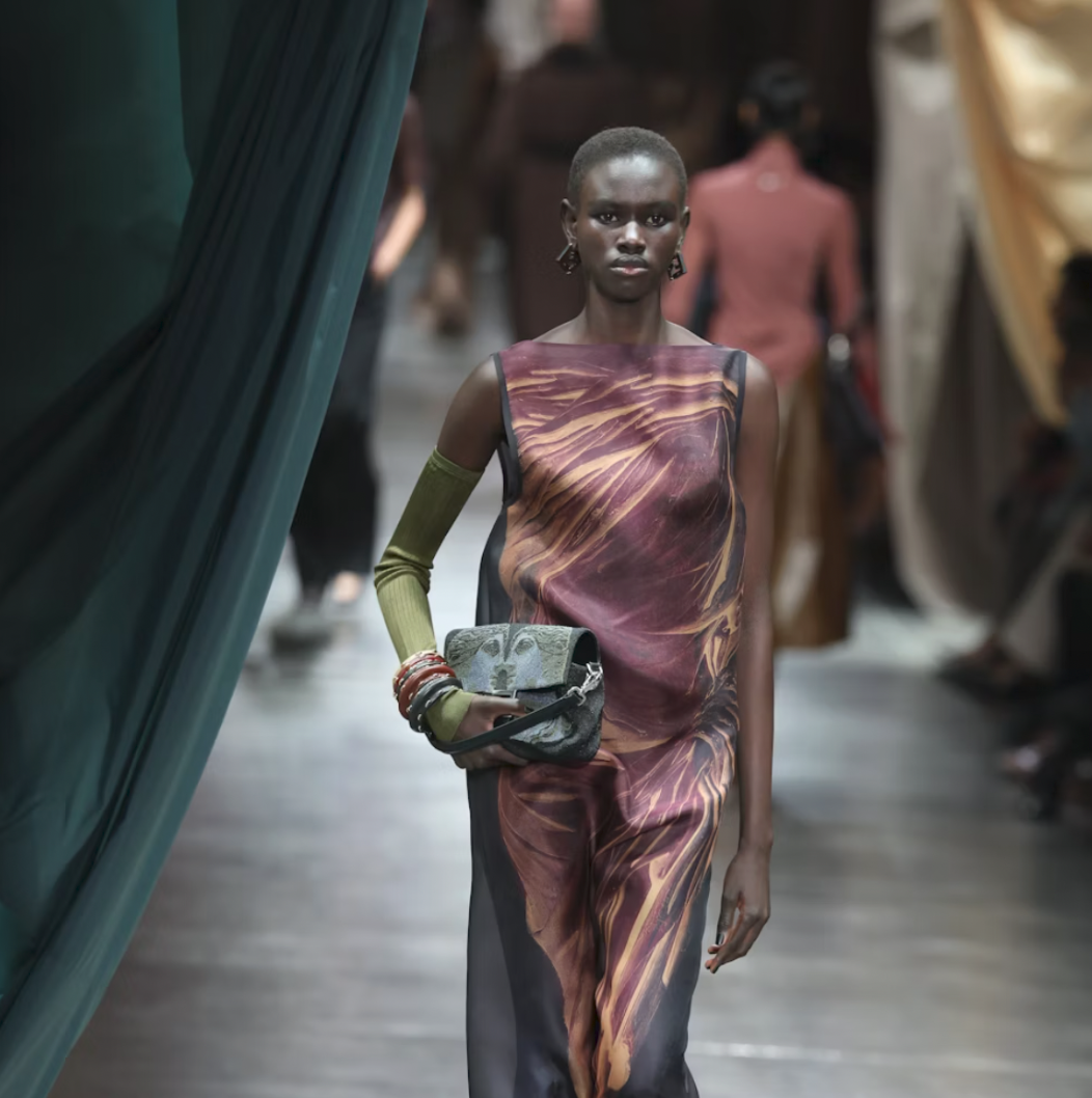 A 2024 W Magazine article intricately recounts the Fendi Women’s F/W ‘24 runway show. The Italian fashion house held its show in Milan, supporting a color palette of earthy tones, with leathers, draped fabrics, and furs. It adapts traditional autumnal clothing into transitional wear.